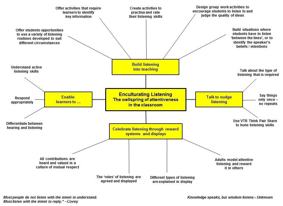Students need to be very clear about the learning habits and processes which they are using. Teachers seek to make every aspect of the learning process as visible as possible through the language they use and through the words and images they display on the walls.