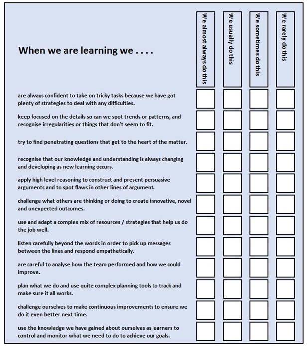 - how learners could be enabled to reflect on and evaluate their use of these behaviours.