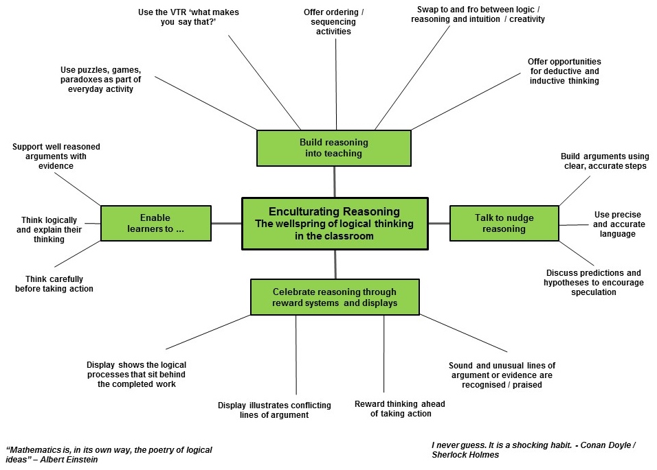 A well formed Imagining habit involves being ready, willing, and able to: use the mind as a theatre in which to play out ideas and possible actions experimentally; use a rich variety of visual, aural and sensory experiences to trigger creative and lateral thinking: explore possibilities speculatively, saying ‘What might …’, ‘What could …’ and ‘What if …?’ rather than being constrained by what is; retain a childlike playfulness when confronted with challenges and difficulties; be aware of intended outcomes whilst adopting a flexible approach to realising goals; rehearse actions in the mind before performing them in reality.
