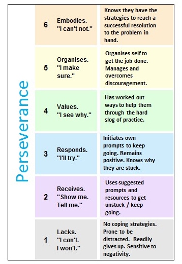 If you take a hard look at perseverance you’ll notice it’s about keeping going in the face of difficulties; channelling the energy of frustration productively; knowing what a slow and uncertain process learning often is. A mature learner understands that real learning requires effort and persistence, relishes opportunities to struggle with challenge, and believes that with effort they can become a more effective learner. This captures what we want all learners to become so there’s more to it than you might have thought.