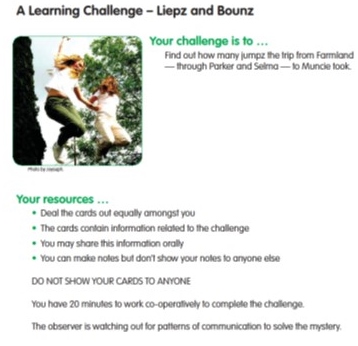 Exemplar Lessons – A lesson plan that integrates each of the four learning behaviours into a complete lesson.
