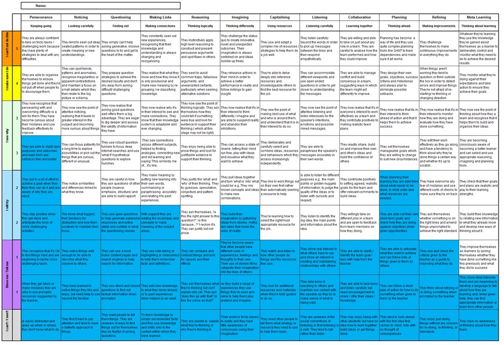 Highly effective learners have a wide range of learning dispositions and skills, but this doesn’t mean all 12 learning behaviours are of equal importance. Perseverance, Questioning, Collaboration and Revising for example, formed the vital bedrock of Phase 1 on which other behaviours can now be successfully grafted. Some behaviours are exercised more frequently in some subjects than in others, so the blend of behaviours essential for being a scientist may differ from the blend for a linguist, or an artist etc. Secondary teachers in particular may well be attracted to the learning behaviours that figure most frequently in their own subject areas.