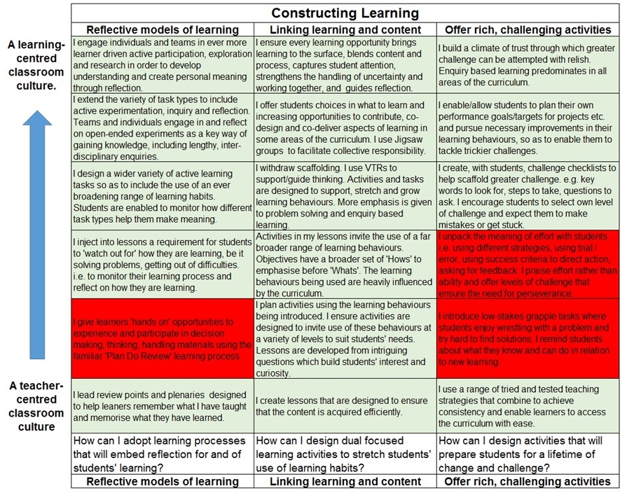 The content of this section encourages teachers to play with introducing more learning behaviours.