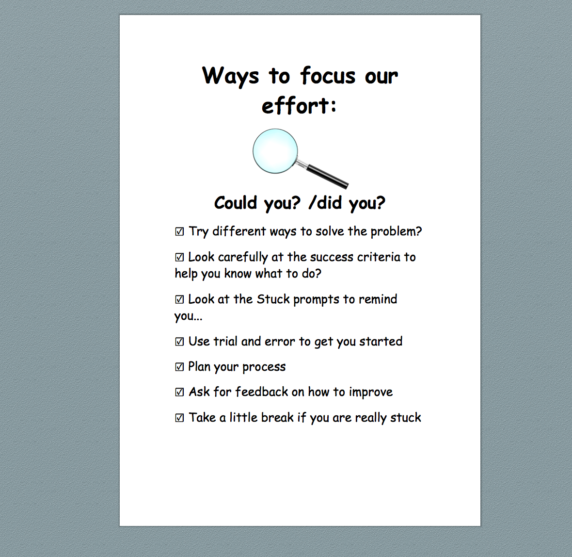 - acknowledging/recognising/ praising when overcoming stuck strategies are used more skilfully