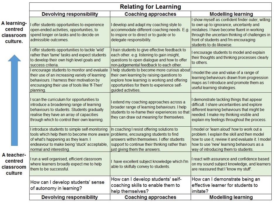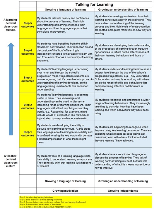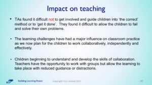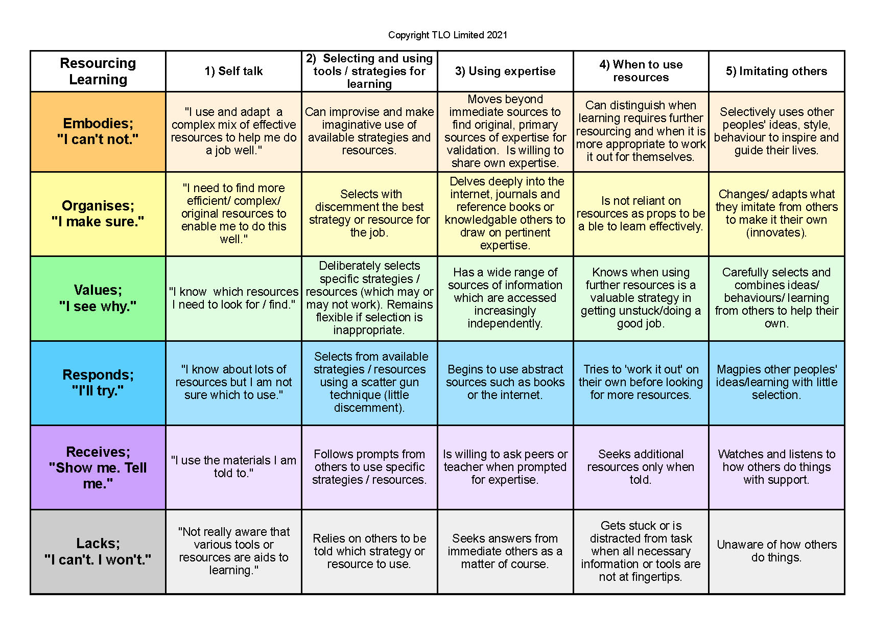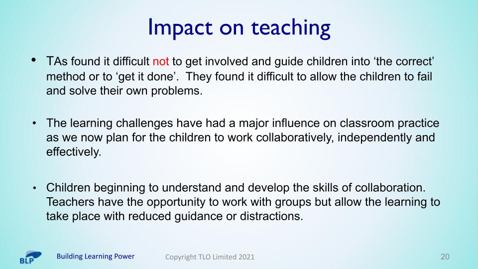 The impacts, in the longer term, will be considerable in terms of weaving the development of learning behaviours into delivery, and in terms of the monitoring and evaluation of learning behaviour growth over time.
