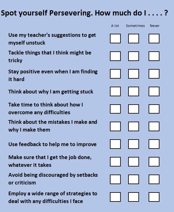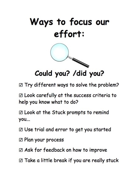 At the beginning of a session talk with the children about the strategies and things they might use to help them with their learning.