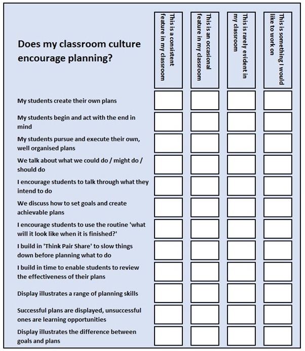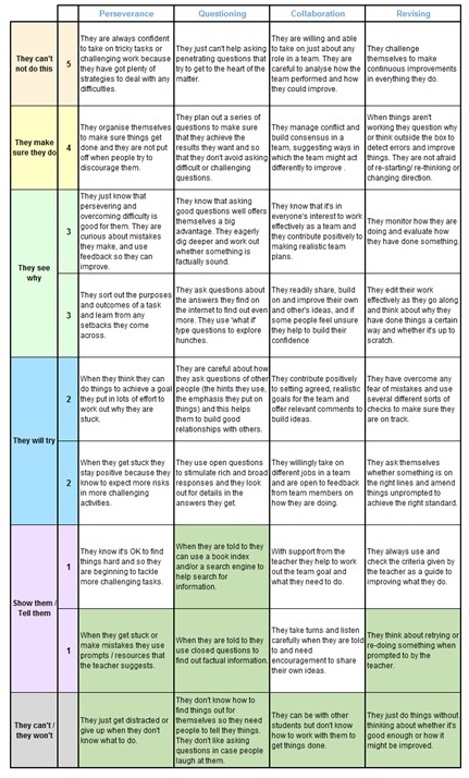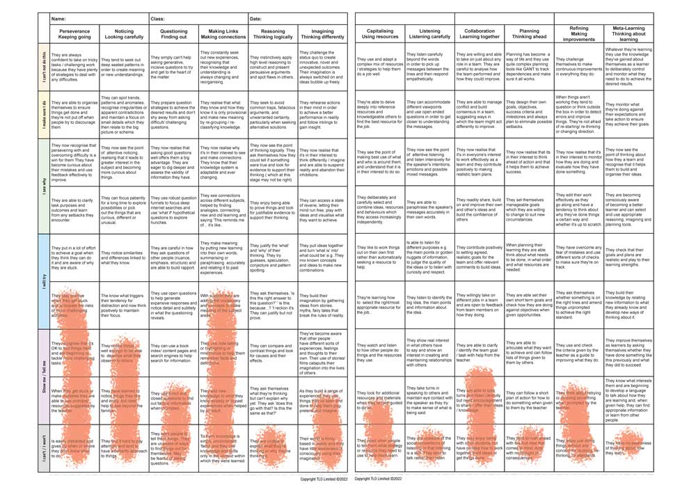 - a) how learning behaviours are integrated into curriculum planning and lesson design;
