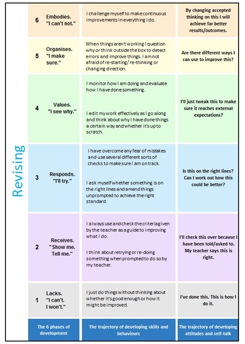Growing revising; a trajectory of developing behaviours, skills, attitudes and self-talk