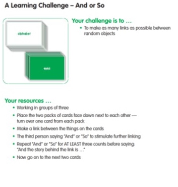 Collect a pile of unrelated objects, or ask students to bring in one object each and mix them in random groupings – eg a copper tube, piece of cloth, felt pen, blu-tack.