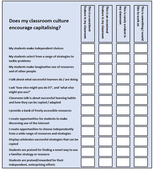 As the phase 2 programmes Building the Scope and Building Depth readily show, phase 1 was a great place to start, but a terrible place to finish. There is still much to do to consolidate the gains from phases 1 and 2 of Building Powerful Learners and teachers who are not involved in the phase 3 teams should continue to embed the phase 2 ideas into their everyday practice. Whether you have chosen Building the Scope or Building Depth at phase 2, there is sufficient material in each to support teachers’ development over a couple of years or so.