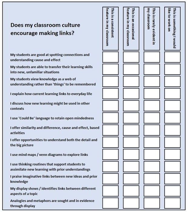 Team members will begin to trial some aspects of building learning behaviours into curriculum delivery and of monitoring the growth of learning behaviours as they engage with the Building Coherence units. But what of those teachers who are not directly involved in these teams?