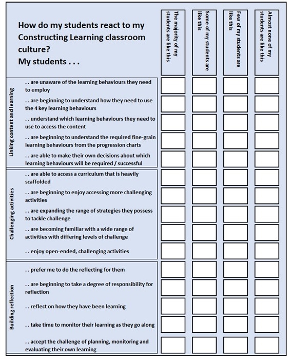 Given that the school has decided to continue Building Powerful Learners, it is reasonable to assume that this sits well with the school’s ethos and aspirations.