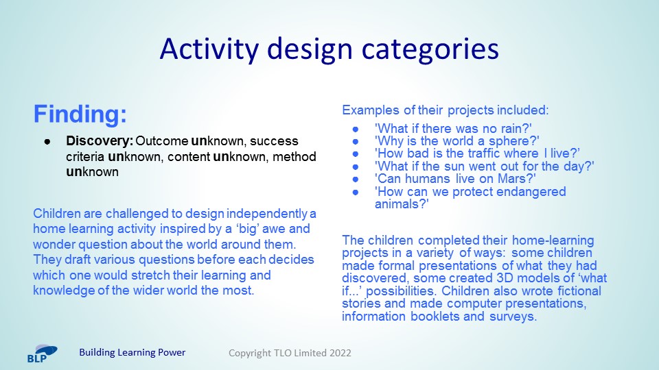 Ask yourself what a comparable enquiry type activity in your own classroom might look like. What might be holding you back from giving it a go, or from using an activity of this type more frequently?