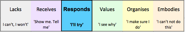 In the Responds phase, students develop greater independence and are motivated to initiate their own prompts or practical strategies to get themselves unstuck. They are realising that fear and the need for adult support can be overcome by using more coping strategies and maintain positive emotions.
