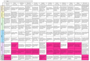 Each domain clusters together for or five high value learning behaviours. For example the social domain is made up of the learning behaviours of interdependence, collaboration, listening and empathy and imitation.