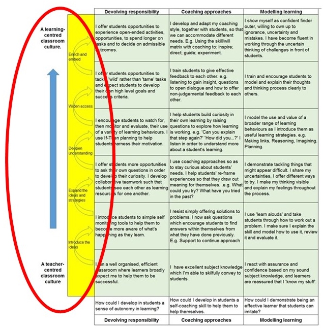 Engagement with ‘Playing the Learning Power Game’ should have already moved practice to the 2nd and 3rd rows. Engaging with the ‘Deeper Game’ will provide the impetus to continue the journey.