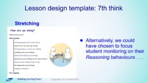After a significant input of activity types we return to the coaching pair of Activity 6 they are asked to look at the learning challenge they designed for Think 5 earlier, to assess what task type it is and then try to lift the task type by one level.