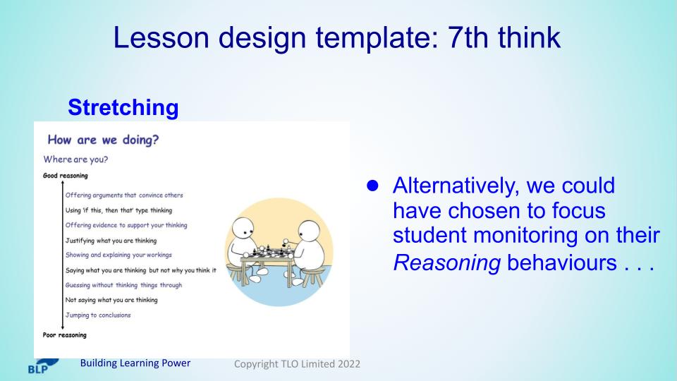 This activity draws attention to Thinks 7 and 9 where students are being asked to monitor their own behaviours and to review how they got on with them.