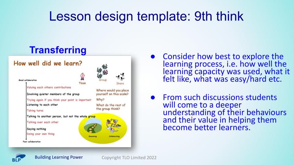 This activity embraces a number of actions and discussions which look at how learning behaviours grow and how this will influence lesson design.