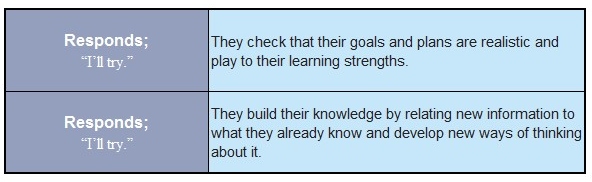 Answers will, at this stage, be weak. Try to move students beyond simplistic notions of ‘(s)he is a good learner because they are clever’ to exploring what they actually do in order to succeed – shift the focus from ability to effort.