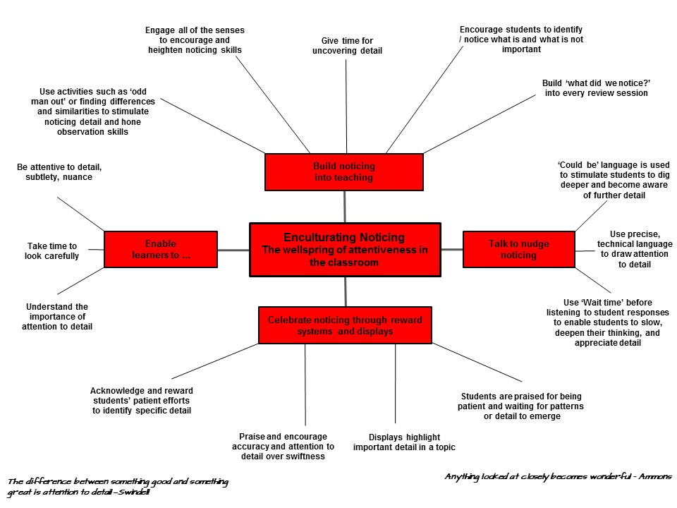 - Top – strategies you could build into the way you teach to stimulate noticing;