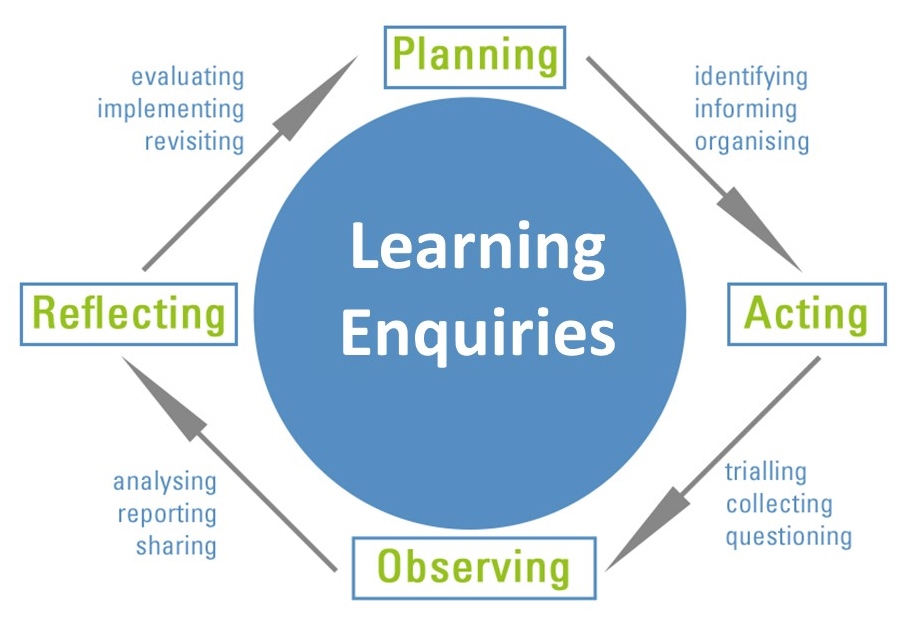 Classroom based enquiries operate in the spirit of enquiry or some would say action research. It’s a quest to find out more, to consider what needs to change, to wonder what might work, to track what happens and to refine practice. It’s a process in which teachers investigate teaching and learning so as to improve their own and their students’ learning. In effect teachers become researchers of their own practice. It helps them to develop new knowledge about their classroom, they become reflective teachers who broaden their teaching repertoire. Importantly it puts them in charge of how they teach and become very aware of the links between how they teach and how students learn and achieve.